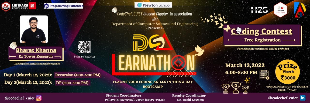 CodeChef CUIET Student Chapter in association with department of Computer Science and Engineering organising Workshop + Coding Contest DAS Learnathon\".💥🚀✨